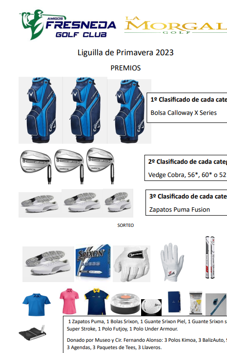 8 Pruebas de 9 hoyos (Stableford). (Cuentan las 5 Mejores).